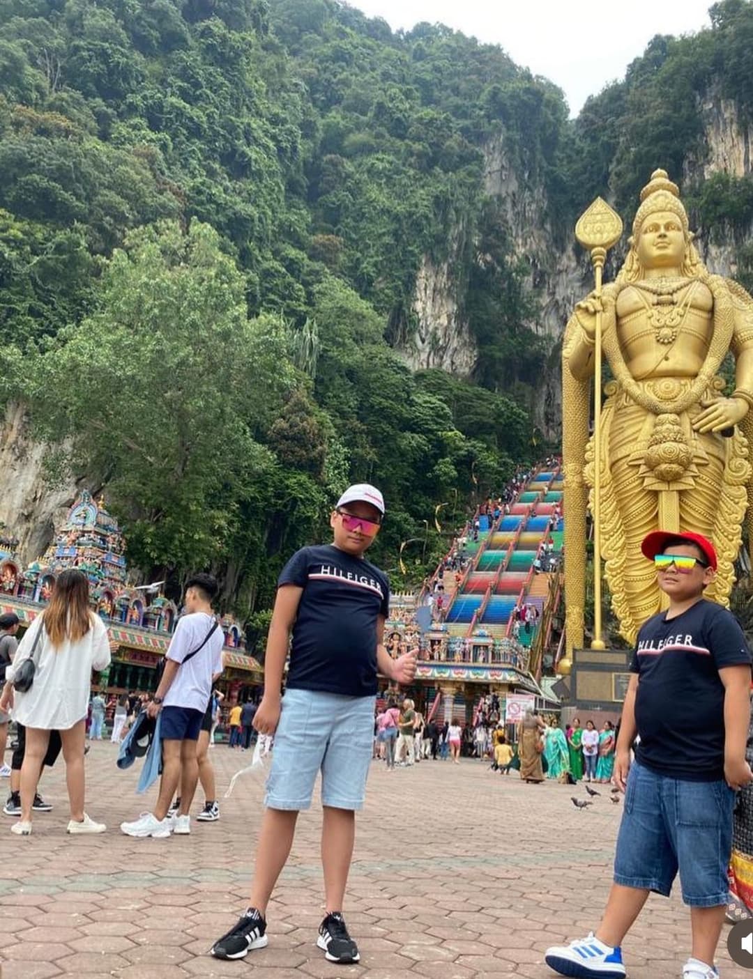 Batu Caves Golden Statue, this iconic 42 m tall golden statue at the base of Batu Caves is dedicated to Lord Murugan. It is one of the Malaysia largest Shive Temple in the making. I had to climb over 2,000 steps! All up and down. And there were a whole lot of birds, like nearly thousands where their droppings stains around the side lines. But it was still nice.
