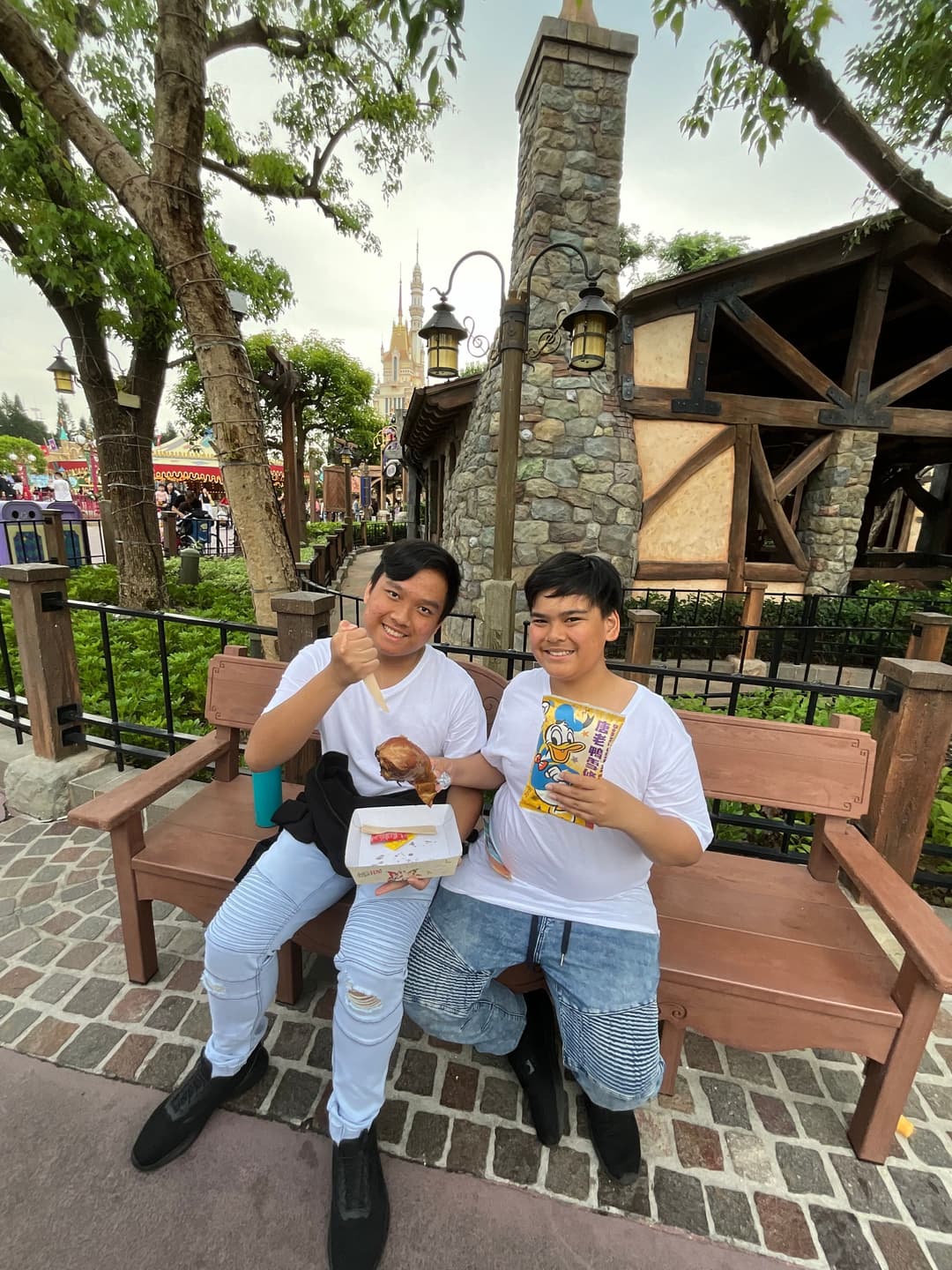 In the photo you see is where me and my brother sharing an actual chicken leg, like the ones from Disney's shows. It turns out they use turkey I think for the real-life representation and let me tell ya. We took HARD chomps out of that turkey rod. It tasted very smokey as well too! Like cooked under a burning chimney.